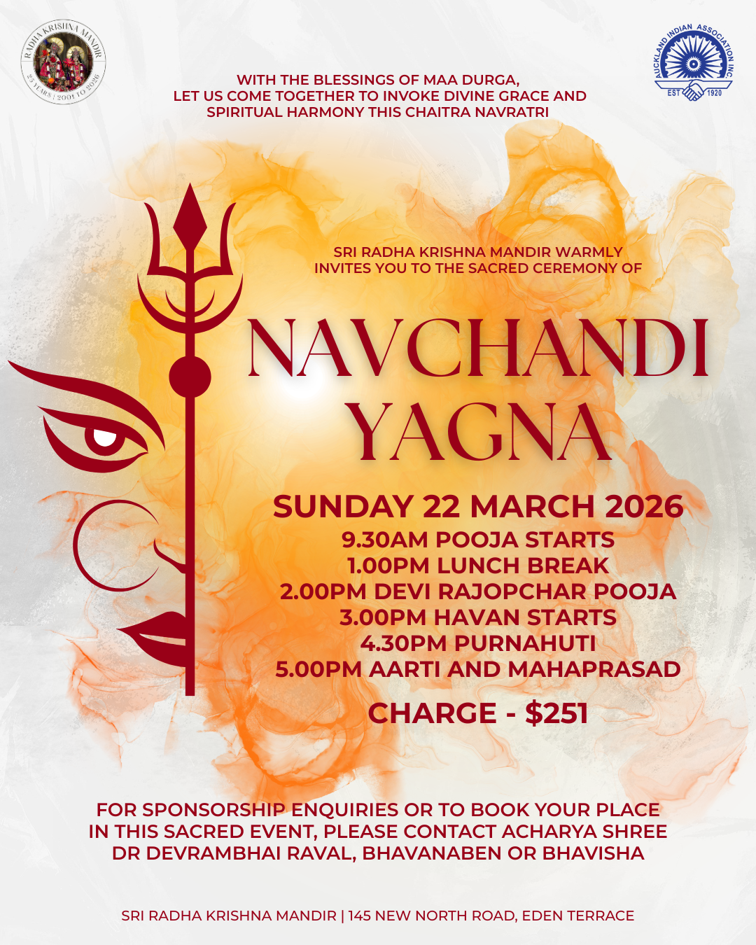 For any sponsorship or donation enquiries, please contact Panditji Shree Devrambhai on 02102442048.