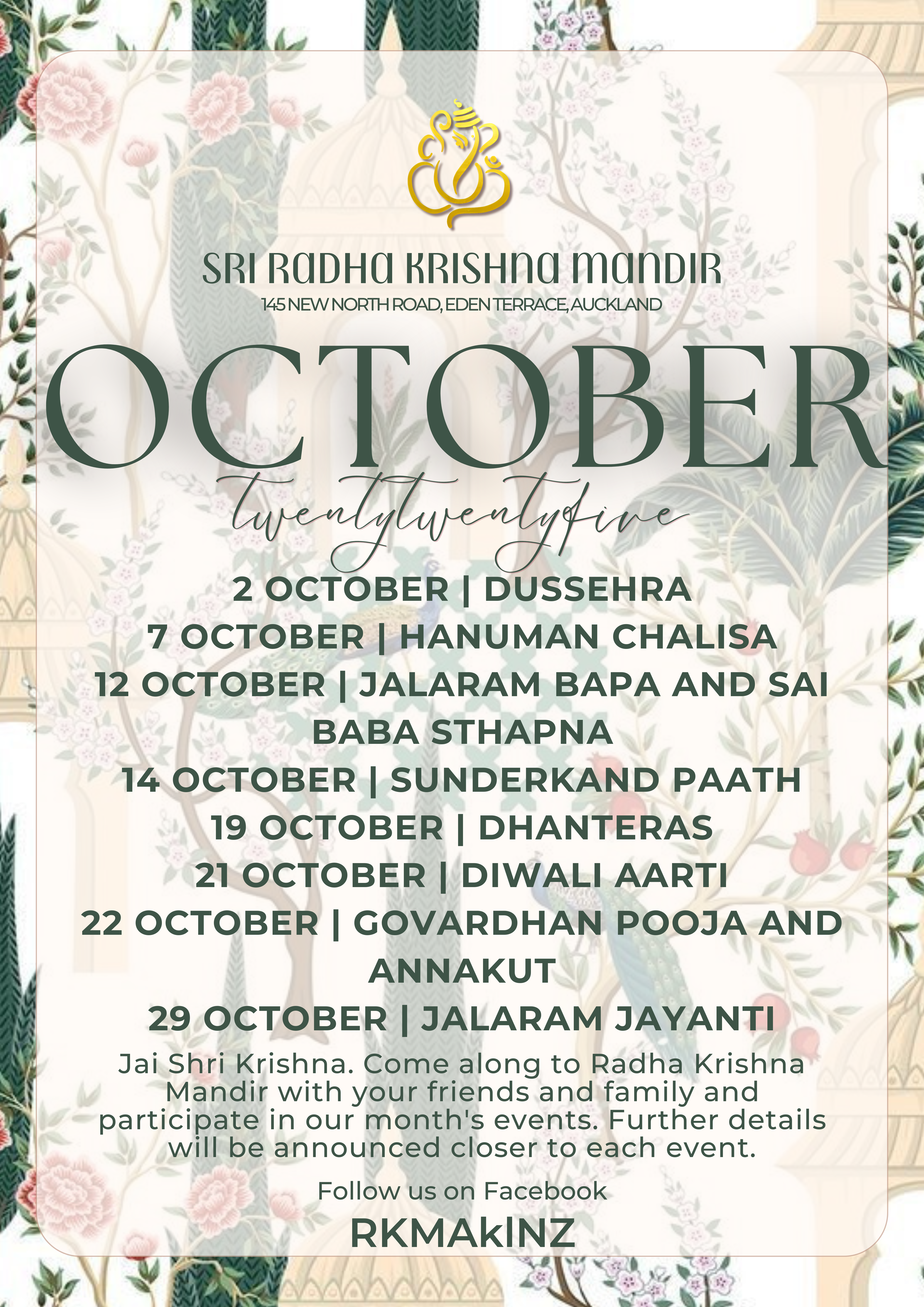October Month Temple Events