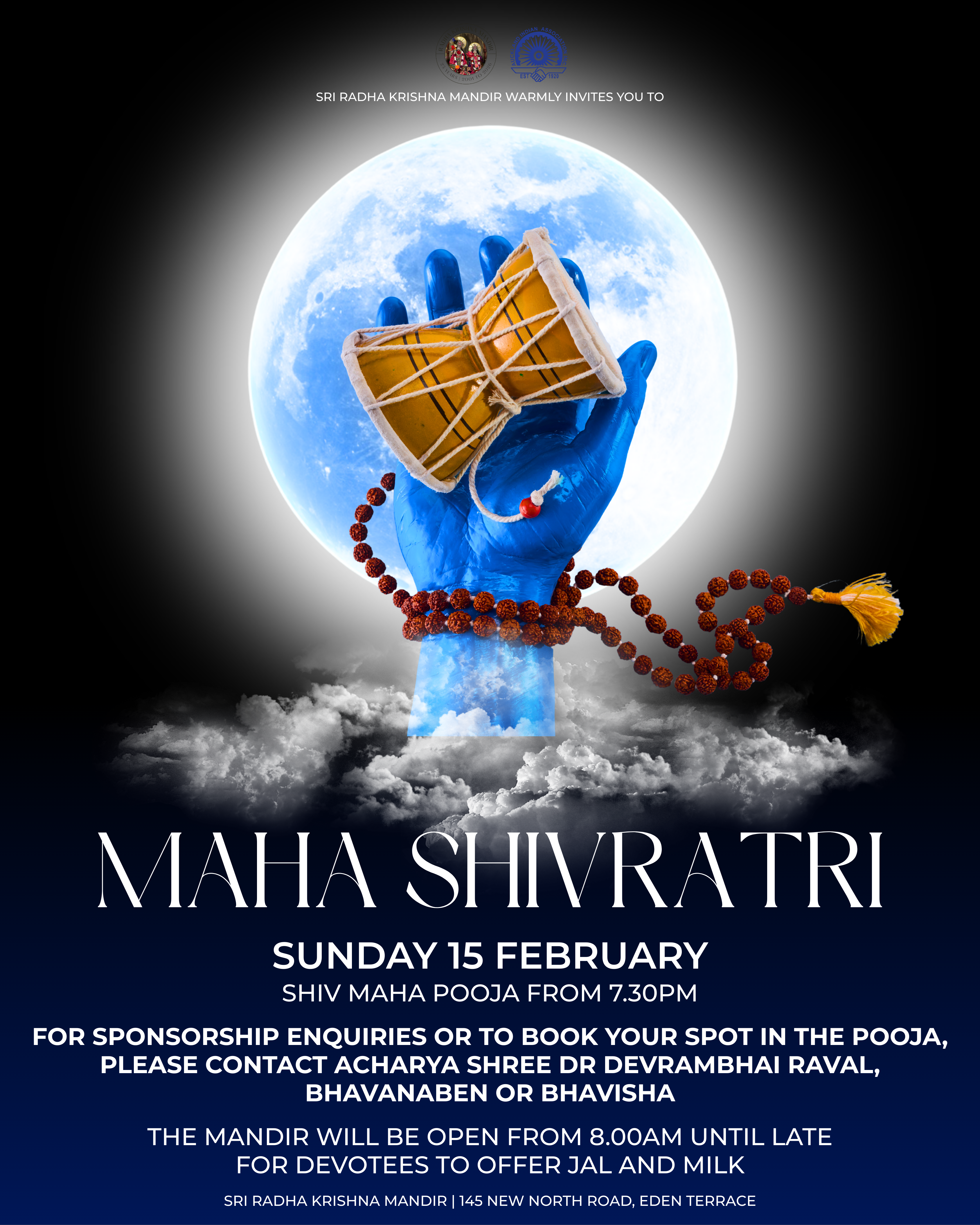 For sponsorship and donation enquiries, or to book your spot in the pooja, please contact Panditji Dr Devrambhai Raval, Bhavanaben, or Bhavisha.